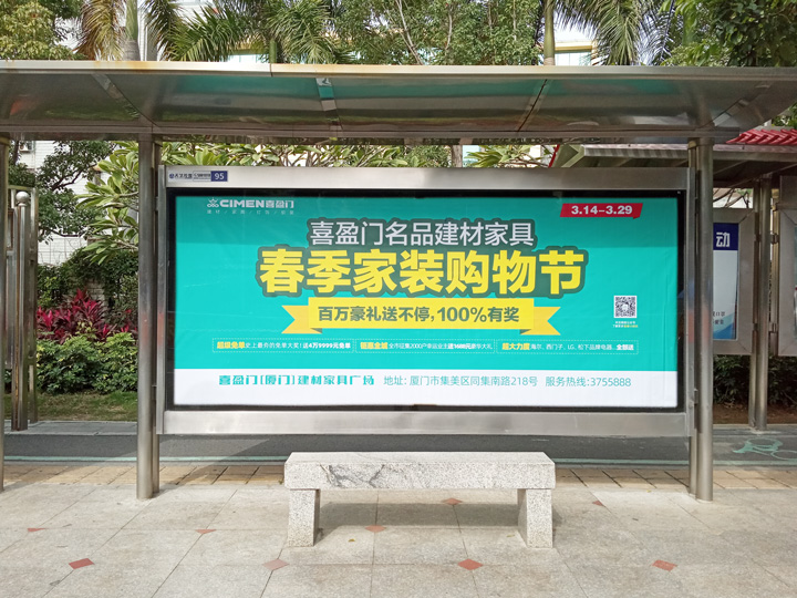 一般情況下,候車亭廣告使用單一的顏色作背景,文字采用與背景顏色反差較大的色彩,這樣既能襯托主體,又能令遠處的人可以清楚地看到。