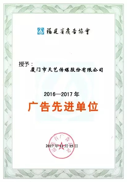 日前,在國家工商行政管理總局辦公廳出臺的《關(guān)于進(jìn)一步推進(jìn)廣告業(yè)創(chuàng)新創(chuàng)業(yè)有關(guān)工作的通知》(辦字【2017】209)中,由廈門市天藝傳媒股份有限公司創(chuàng)辦的“天藝文創(chuàng)孵化基地”被評定為國家級廣告業(yè)創(chuàng)新創(chuàng)業(yè)示范基地,成為廈門市2017年度唯一一家獲評廣告業(yè)創(chuàng)新發(fā)展優(yōu)秀典型企業(yè)的單位。
